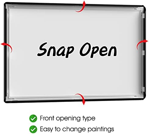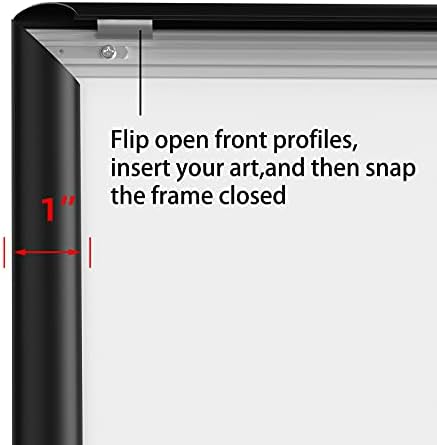 Advertisement frames come in 25mm(1 inch) finished profile and is in a black satin anodized finish. Used in cinemas, restaurants, community centers, schools, galleries, or at home to showcase your favorite poster or artwork. Front opening, Easy poster change, Unique Spring-hinged: No need for tools or removal from the wall for fast and easy poster change. This Solid Aluminum frame is made to the highest industry standards, the best quality available at the lowest price.