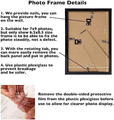 BEAUTIFUL DECORATION: 7 by 9 photo frame fits 7 inches x 9 inches photo, perfect for bedroom, office, living room, dining room, kitchen, bathroom and game room wall decoration. If you have any questions or problems in using it, please feel free to contact us, we will reply you within 24 hours.